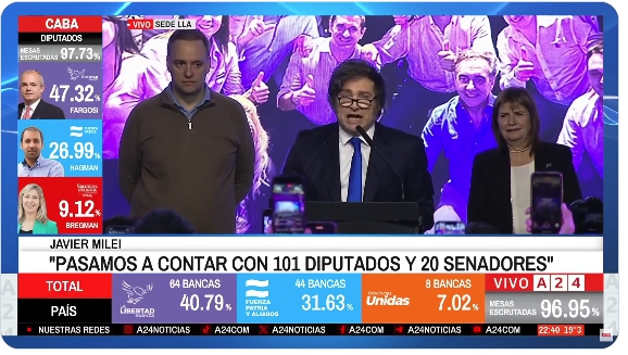 밀레이 대통령이 총선 승리를 선언하고 있다[Taliban@TalidanMilei]