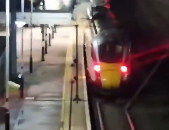 잉글랜드 케임브리지셔주 헌팅던역에서 흉기 난동 사건이 발생한 열차가 들어오고 있다. LibertyInFaith 💝✝️@LibertyInFaith7
