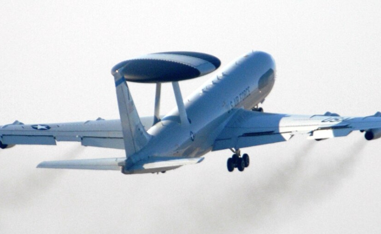 E-3은 적의 움직임을 감시하고 작전을 조율하는 데 핵심 역할을 하는 군용기다. 보잉 707를 개조한 기종으로, 기체 후면에 직경 9미터의 회전식 레이더 돔이 장착돼 있다. 지상, 해상, 성층권까지 목표물을 감시할 수 있다.