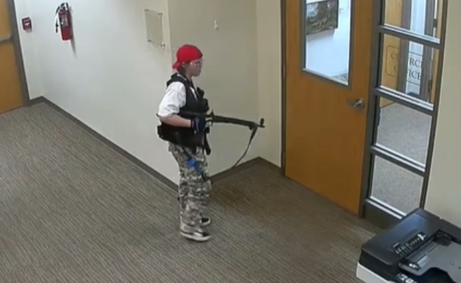 총격범 오드리 헤일이 학교에 침입해 총격 대상을 찾고 있는 모습[메트로폴리탄 내쉬빌 경찰국 페이스북.]