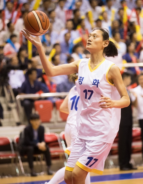 ‘여자 리명훈’으로 불릴 만하다. 리명훈은 1990년대 북한 남자농구의 골밑을 책임졌던 235㎝의 센터다. 미국프로농구(NBA) 무대에 도전한 적이 있다.